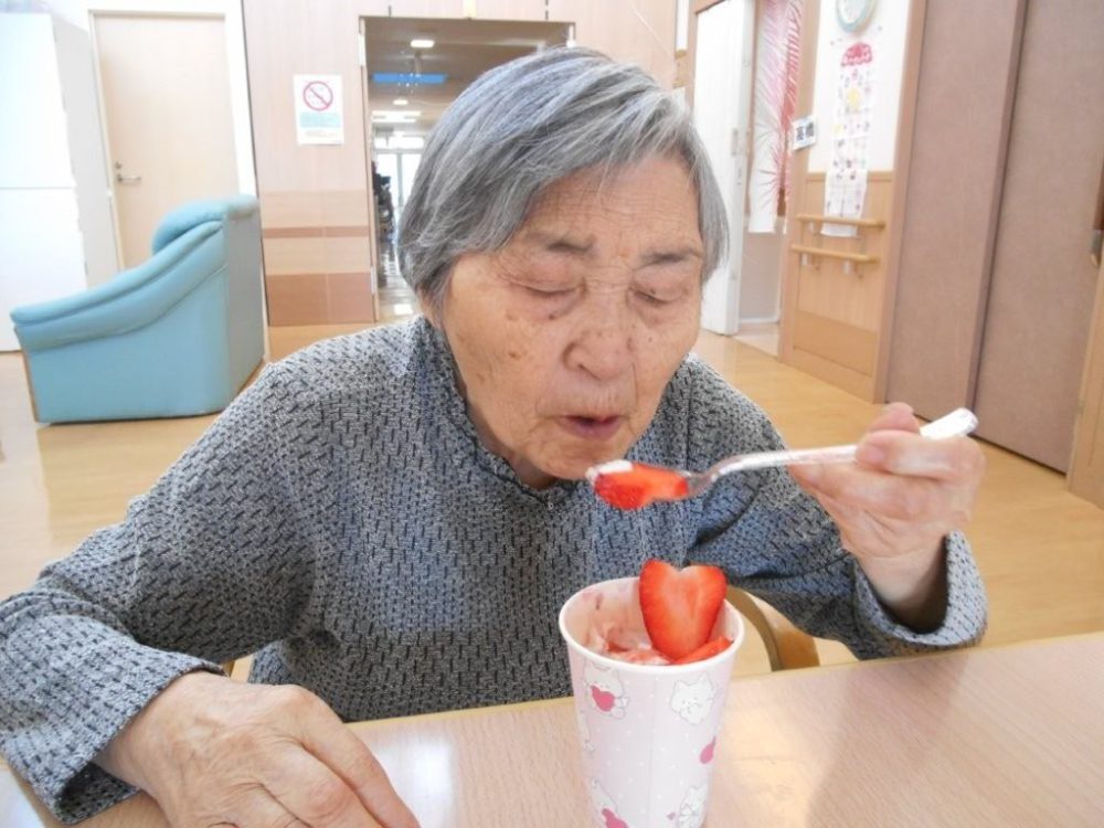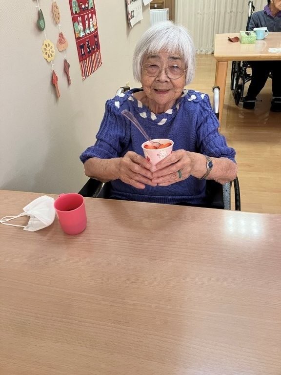 お楽しみのデザートは、いちごのフルーチェにイチゴと生クリームのトッピングです。イチゴ高かったです。(*_*; でも、このために節約して購入出来ました!「美味しい」と嬉しいお言葉も頂けました。