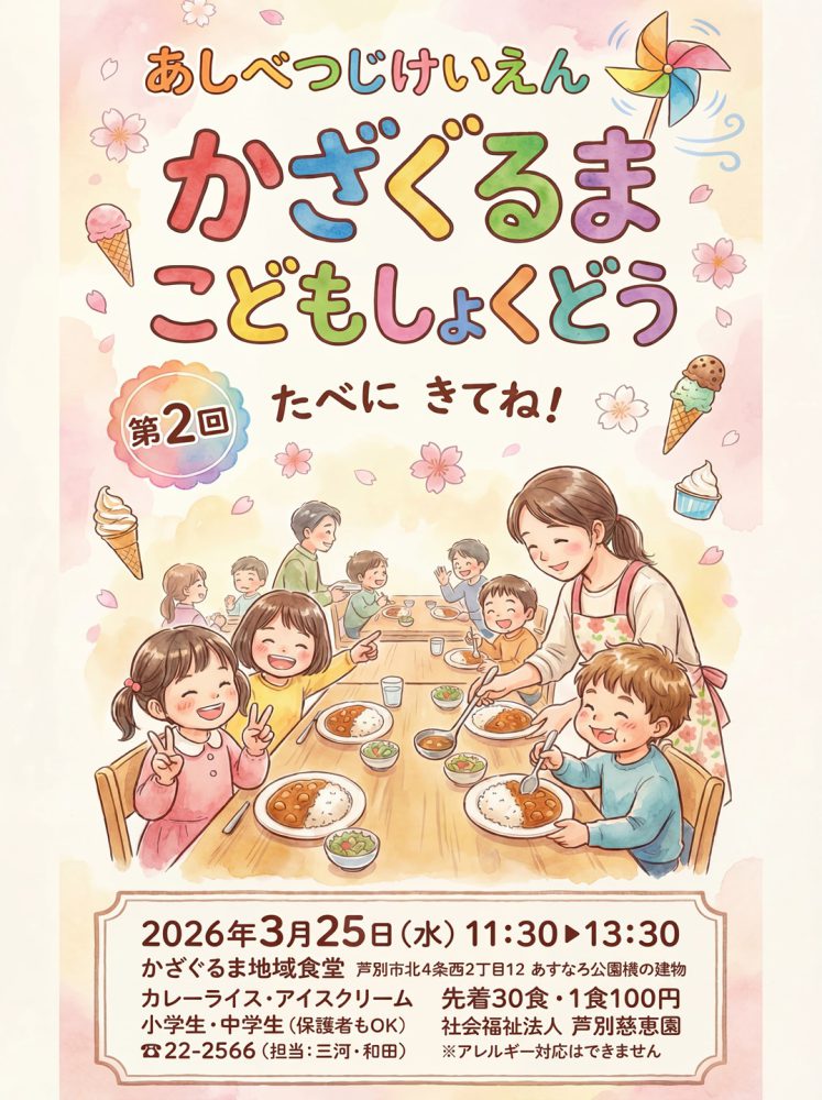 昨年の夏休みに開催した、子ども食堂の第2回目を開催いたします😆 日にち~3月25日(水) 時間~11:30~13:30 ...